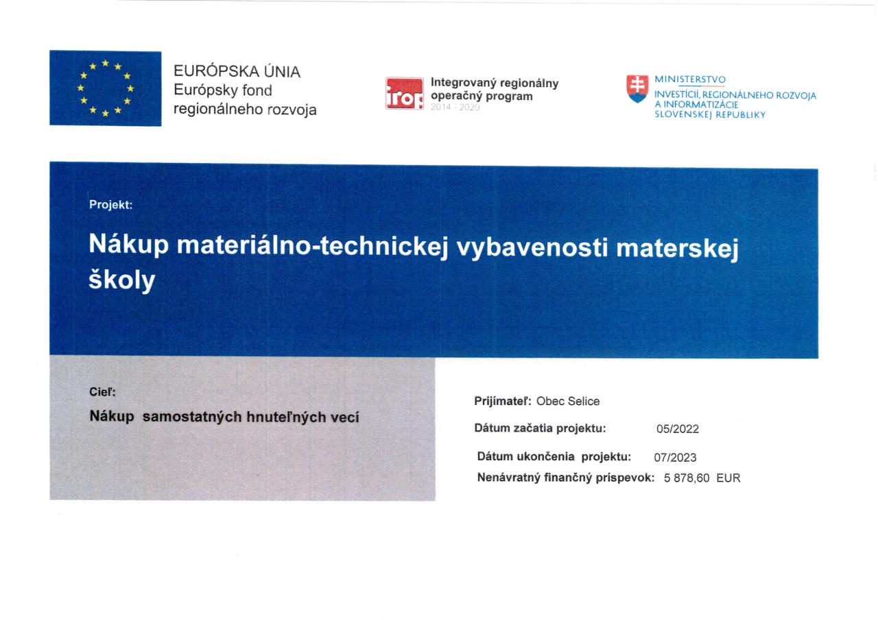 Projekt - Nákup materiálno-technickej vybavenosti materskej školy